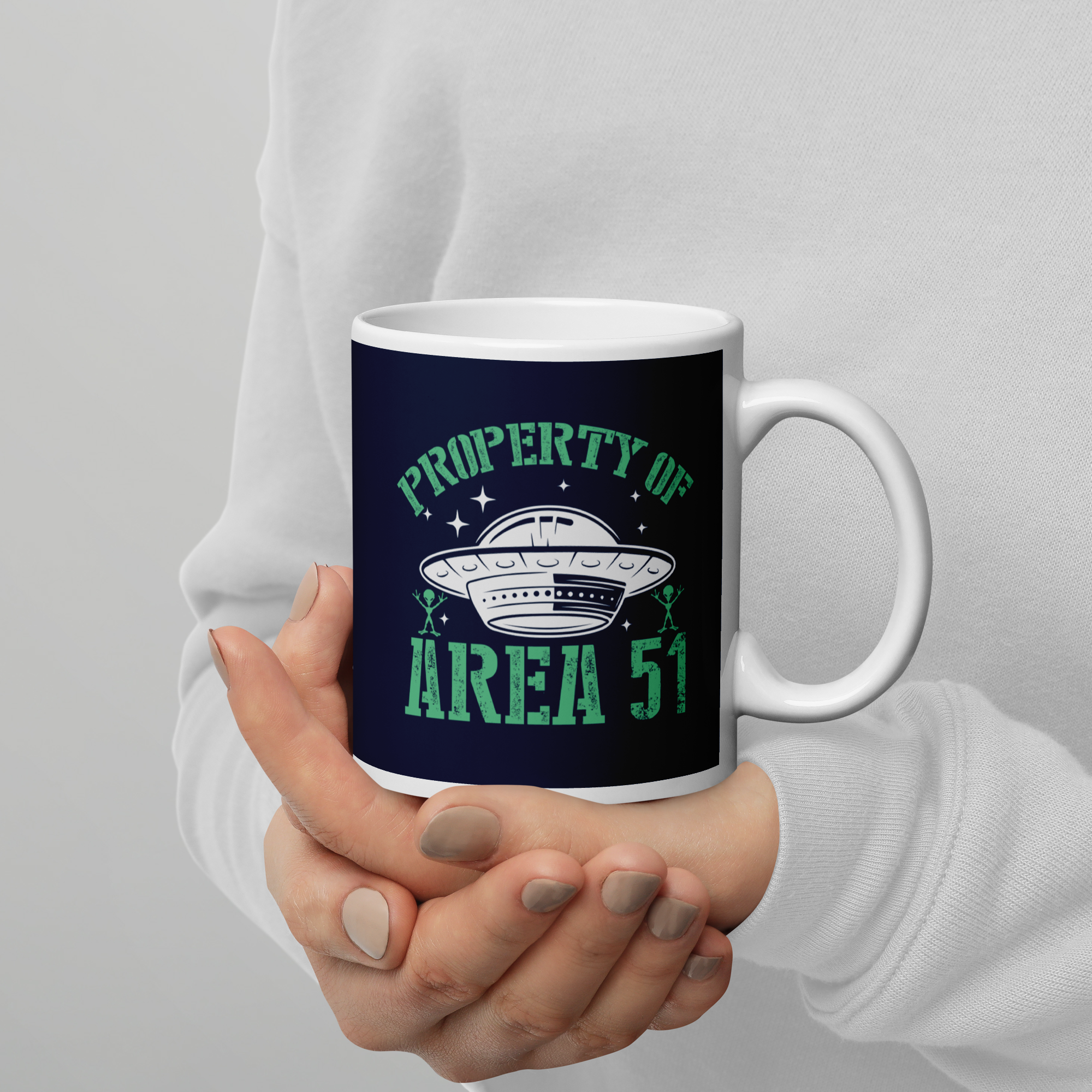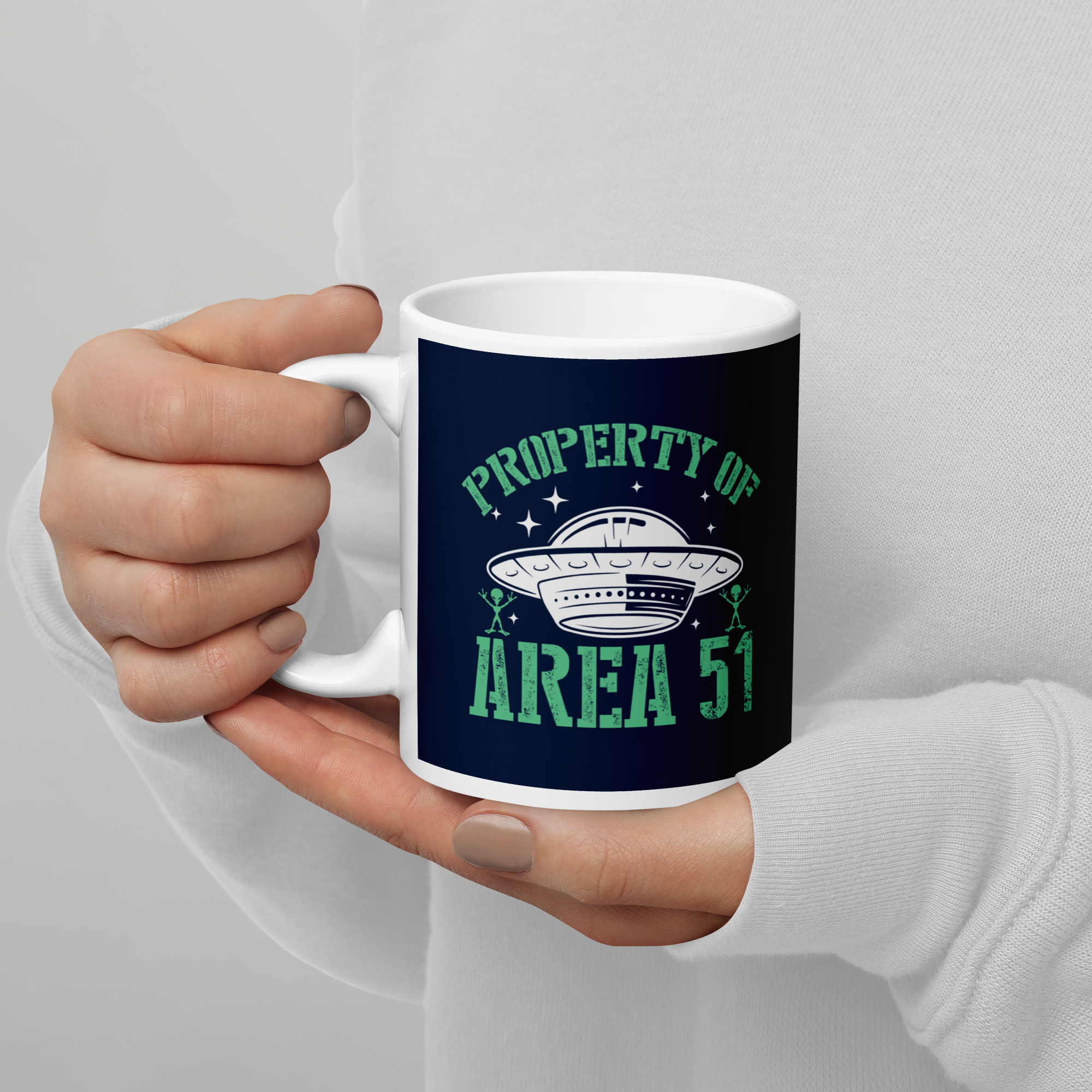 White & Blue Glossy Mug – Property of Area 51